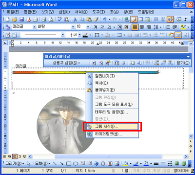 <2> 삽입한 그림을 선택하고 마우스 오른쪽 버튼을 클릭하여 표시되는 그림 서식