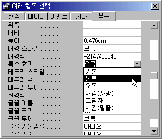 폼을 좀더 보기 좋게 꾸미기 위해서는 배경색, 글꼴, 크기, 유형, 특수 효과 등의 다양한 서식을 설정할 수 있습니다. 예제 데이터베이스를 실행한 후에 [개인프로필] 폼을 디자인 보기로 열어 보세요.