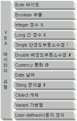 그림은 VBA에서 제공하는 변수의 유형들의