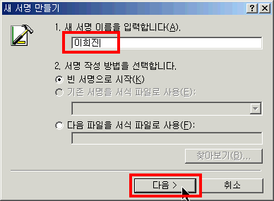 ③ [새로 만들기]단추를 누르고, 새 서명이름을 입력합니다.