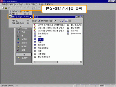 폼, 보고서, 매크로, 모듈을 붙여넣기 할 때는 [붙여넣기