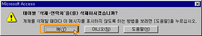 [삭제-연락처] 테이블을 선택한 후 [편집-삭제]를