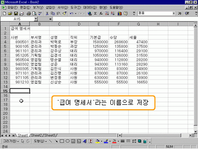 다음과 같이 내용을 입력한 다음 '급여 명세서'라는 이름으로 저장합니다.