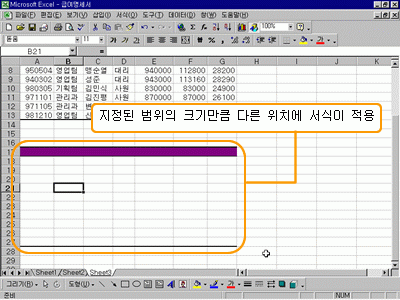 서식이 지정된 범위의 크기만큼 다른 위치에 서식이 적용됩니다.