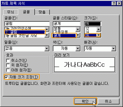 차트를 이루고 있는 각 요소들의 서식을 변경할 수 있습니다. 각 구성요소를 선택한 다음 마우스의 오른쪽 단추를 눌러 선택한 요소의 서식을 변경하는 메뉴를 선택하면 됩니다.