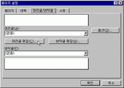 [머리글/바닥글] 탭을 선택하고, [머리글 편집]을 클릭합니다.