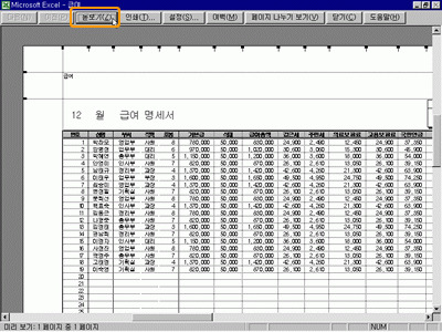 인쇄 전에 [인쇄 미리 보기] 작업을 하면 종이의 낭비를 막을 수 있으며, 페이지 설정이나 인쇄에 관련된 작업을 즉시 수행할 수 있습니다. [파일]-[인쇄 미리 보기]를 이용합니다.