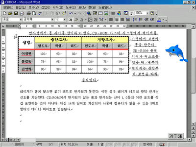 표가 드래그한 곳으로 이동되고, 글자들이 표 옆으로 표시됩니다.