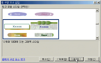 ③ 링크 모음 스타일 선택의 스크롤 막대를 드래그하여 원하는 스타일을 선택하고 다음 단추를 클릭한다.