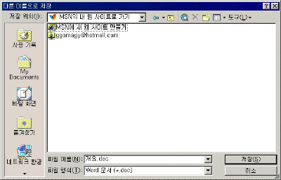 ① 저장 대화 상자에서 네트워크 환경을 선택하고 MSN의 내 웹 사이트로 가기로 저장 위치를