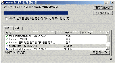정보(머리말만 또는 전체 전자메일)가 동기화 되어야 하는지를 선택할 수 있다. 새로운 진행상태 표시 기능은 동기화 진행시간을 알려준다.