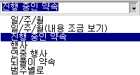 ⑦ [일정]창에 [고급]탭을 선택하여 [현재보기]에서 내림단추를 눌러 [행사]를 클릭하면 위에서 행사작업한 내용이 화면에 보여준다 |