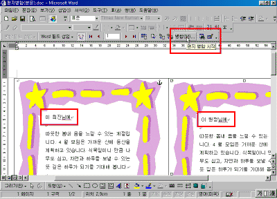 (17) 편지 병합이 완료 되면 [미리 보기] 아이콘을 선택해서 병합된 문서를 확인합니다. |