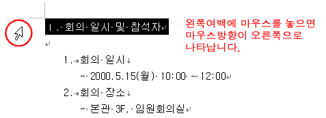 ⑫ 왼쪽 여백에 마우스를 놓고 1번 클릭하면 단락